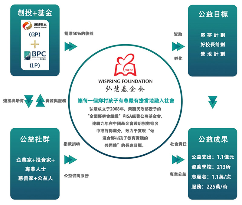 榕泉資本一直積極投身公益事業,用實際行動擔當時代責任。作為源慧資本的戰略合作夥伴,榕泉資本以過億的資金投入,扶持創業企業家成就事業,承諾捐贈50%以上的創投收益,共同投入到弘慧基金會,用實績促進鄉村教育公益事業的良性發展。